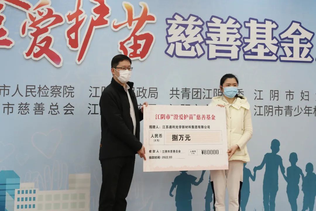 ▲ 通利集团向“澄爱护苗”慈善基金捐赠8万元人民币