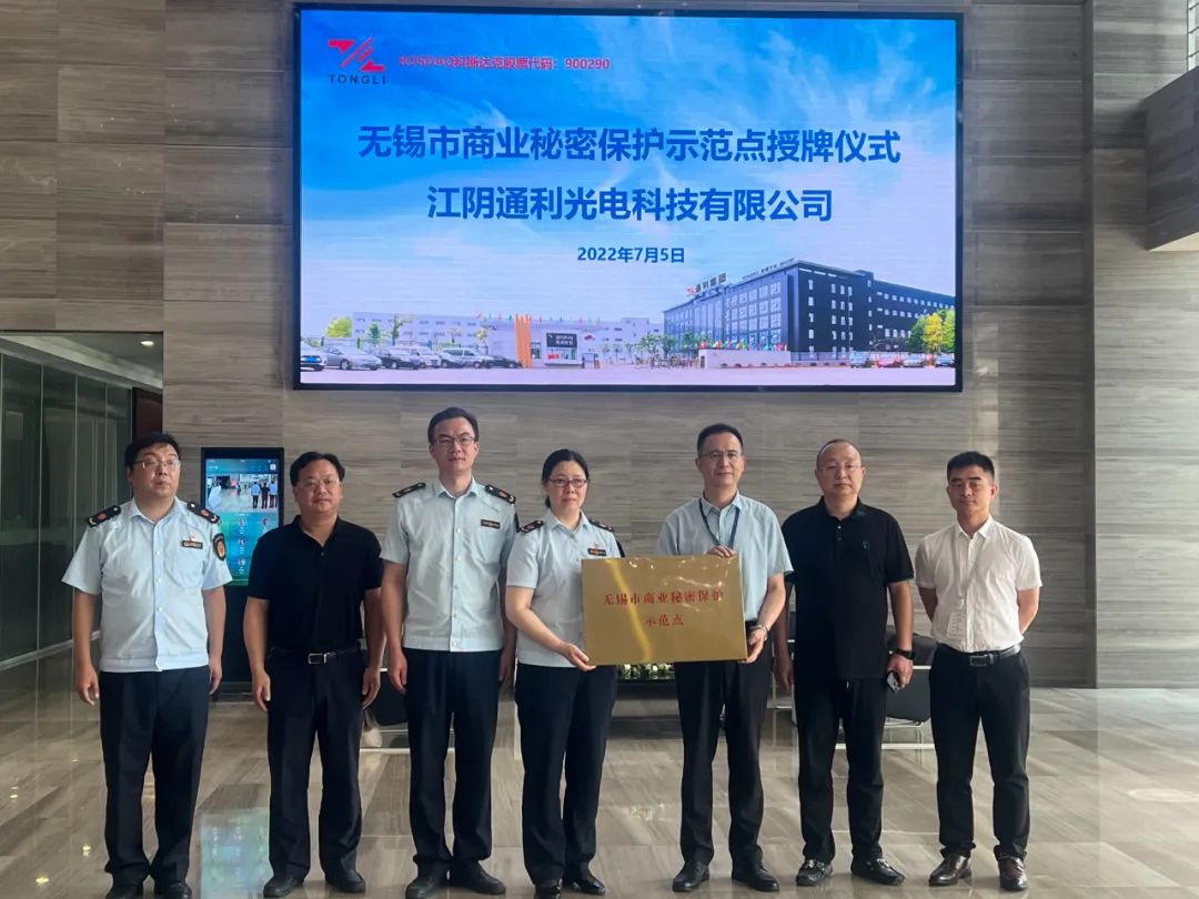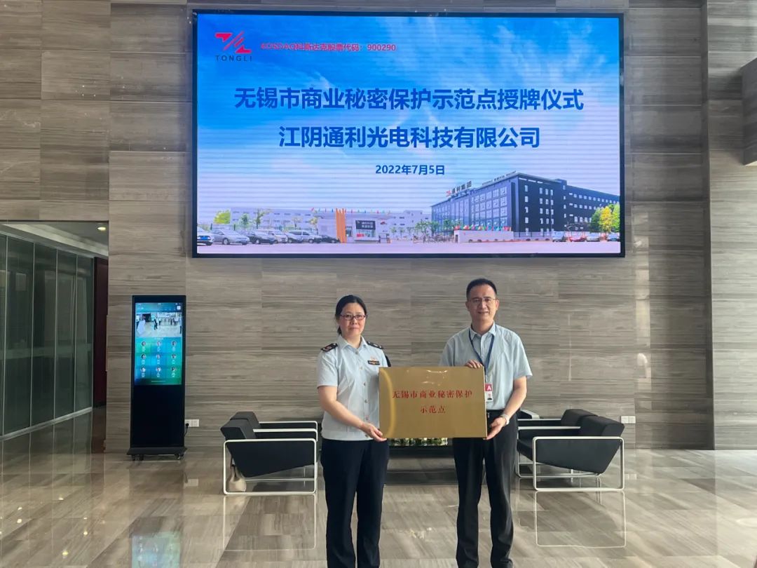 7月5日上午,江阴通利光电科技有限公司获评“无锡市商业秘密保护示范点”。