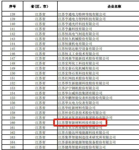 江苏慧智新材料科技有限公司成功入围!