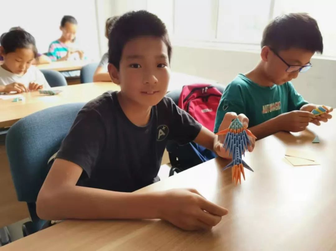 学做三角插中,孩子们用灵巧的小手将普通的彩纸幻化成活灵活现的游鱼、小鸟。硬笔书法培训,义工老师带领孩子一笔一划写字,也把“端端正正做人”的理念悄无声息地渗入孩子心田;“致敬伟大祖国”儿童诗欣赏与写作,义工老师领着孩子读童诗,写童诗,用饱含童心童趣的文字致敬伟大的祖国……