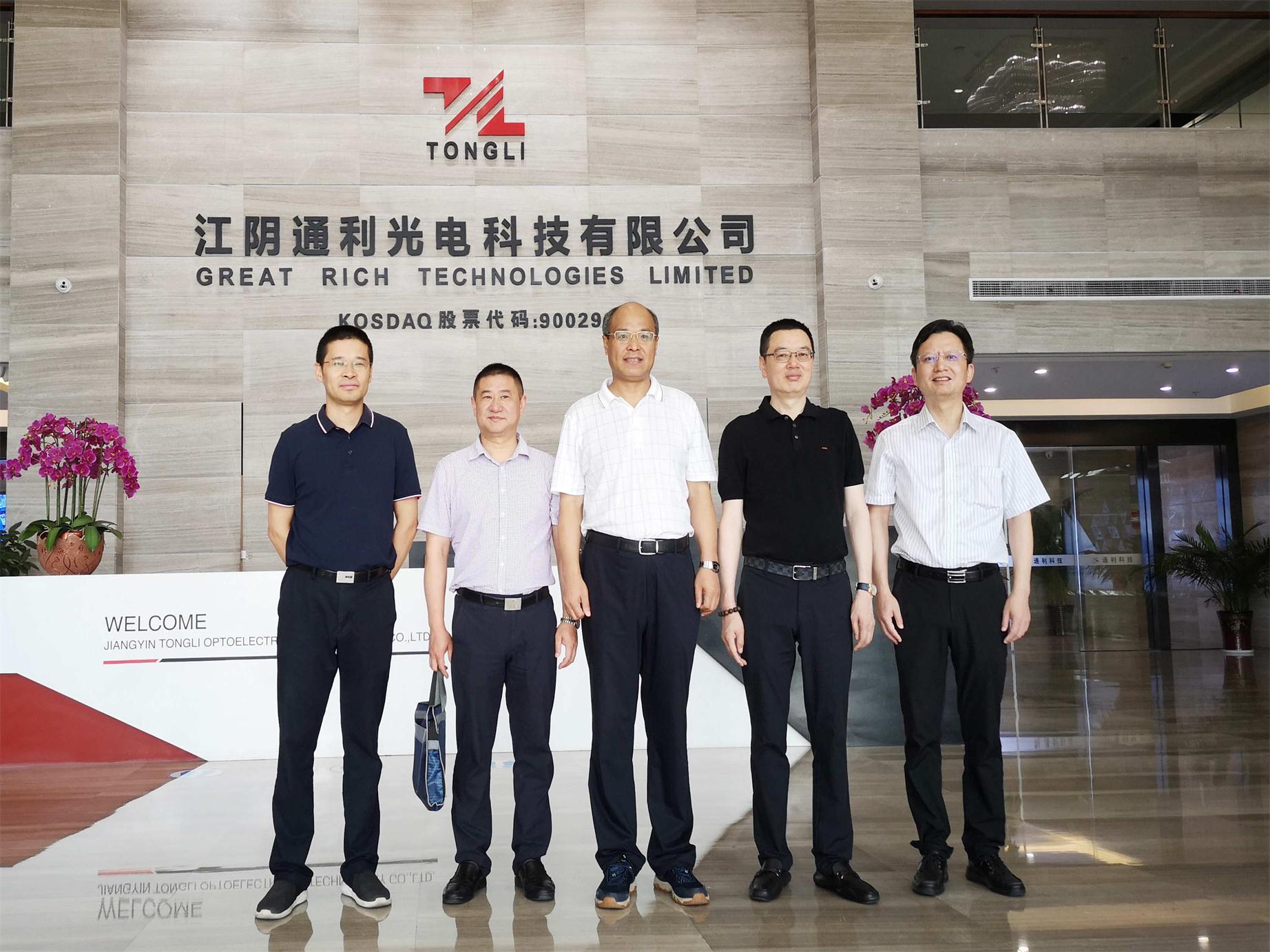 7月17日,江苏省台办巡视员王鲁宁一行莅临江阴通利光电科技有限公司(以下简称“通利科技”),实地了解企业经营情况,就企业转型升级、台企民企融合发展开展专题调研,无锡、江阴台办相关领导参加调研。通利科技董事长周永南陪同调研。