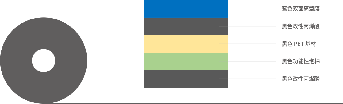 具有优良重工性能的泡棉双面胶带,其特殊胶黏剂能够在多种不同材料表面具有优良的